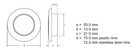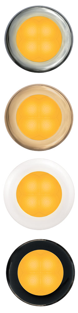 The new LED lamps are available in 9 exciting colours and feature a mounting depth of only 13.0mm. Rims are available in polished 316 stainless steel, gold plated stainless steel, black or white plastic. Custom coloured plastic rims and surface mounting spacer rings are also available. LED lamps consume a fraction of the energy of traditional bulb lamps and run very cool due to their low current draw. This provides safer installation into light weight materials where the heat of traditional lamps may cause damage to the surrounding structure. Advanced lens technology provides a cool and even spread of soft light without glare or eye strain. LED technology has no filaments to break making the lamps extremely shock, impact and vibration resistant and completely maintenance free for an ultra long service life. Each lamp is a completely sealed and waterproof unit, UV and corrosion resistant, perfectly suited for the demanding marine environment. LED courtesy lamps represent energy efficient, maintenance free 'fit and forget' technology. 12V Polished Stainless Steel Rim Part Number: 2XT 980 507-021 ________________________________________