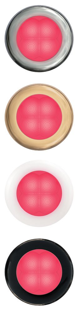 The new LED lamps are available in 9 exciting colours and feature a mounting depth of only 13.0mm. Rims are available in polished 316 stainless steel, gold plated stainless steel, black or white plastic. Custom coloured plastic rims and surface mounting spacer rings are also available. LED lamps consume a fraction of the energy of traditional bulb lamps and run very cool due to their low current draw. This provides safer installation into light weight materials where the heat of traditional lamps may cause damage to the surrounding structure. Advanced lens technology provides a cool and even spread of soft light without glare or eye strain. LED technology has no filaments to break making the lamps extremely shock, impact and vibration resistant and completely maintenance free for an ultra long service life. Each lamp is a completely sealed and waterproof unit, UV and corrosion resistant, perfectly suited for the demanding marine environment. LED courtesy lamps represent energy efficient, maintenance free 'fit and forget' technology. 12V Polished Stainless Steel Rim Part Number: 2XT 980 507-421 ________________________________________