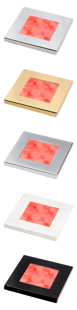 Each lamp is a completely sealed and waterproof unit, UV and corrosion resistant, perfectly suited for the demanding marine environment. Enhanced brightness versions are available in White and Warm White. These are three times brighter than regular soft White and Warm White square LED lamps. Surface mounting accessory rings provide numerous installation options with surface finishes to compliment or contrast the lamp rims. 12V Satin Chrome plated rim Part Number: 2XT 980 587-261 USA: 980 587-261 ________________________________________