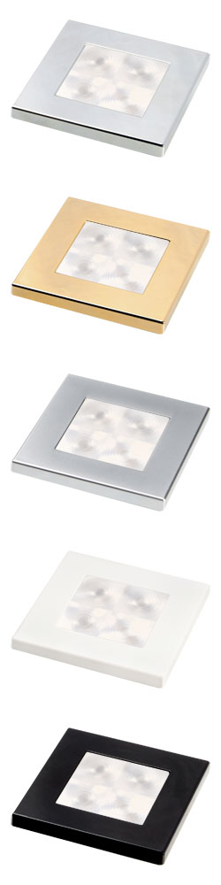 Each lamp is a completely sealed and waterproof unit, UV and corrosion resistant, perfectly suited for the demanding marine environment. Enhanced brightness versions are available in White and Warm White. These are three times brighter than regular soft White and Warm White square LED lamps. Surface mounting accessory rings provide numerous installation options with surface finishes to compliment or contrast the lamp rims. 12V Satin Chrome plated rim Part Number: 2XT 980 580-261 USA: 980 580-261 ________________________________________