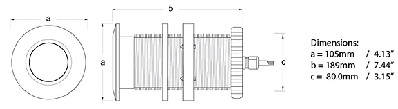 Lens Material Housing Material Light Source Light Output Operating Voltage Power Consumption Degree of Protection Weight Installation type Recommended Positioning Suitable hull materials Approvals Manufactured in Outline![]() Light diagram: |